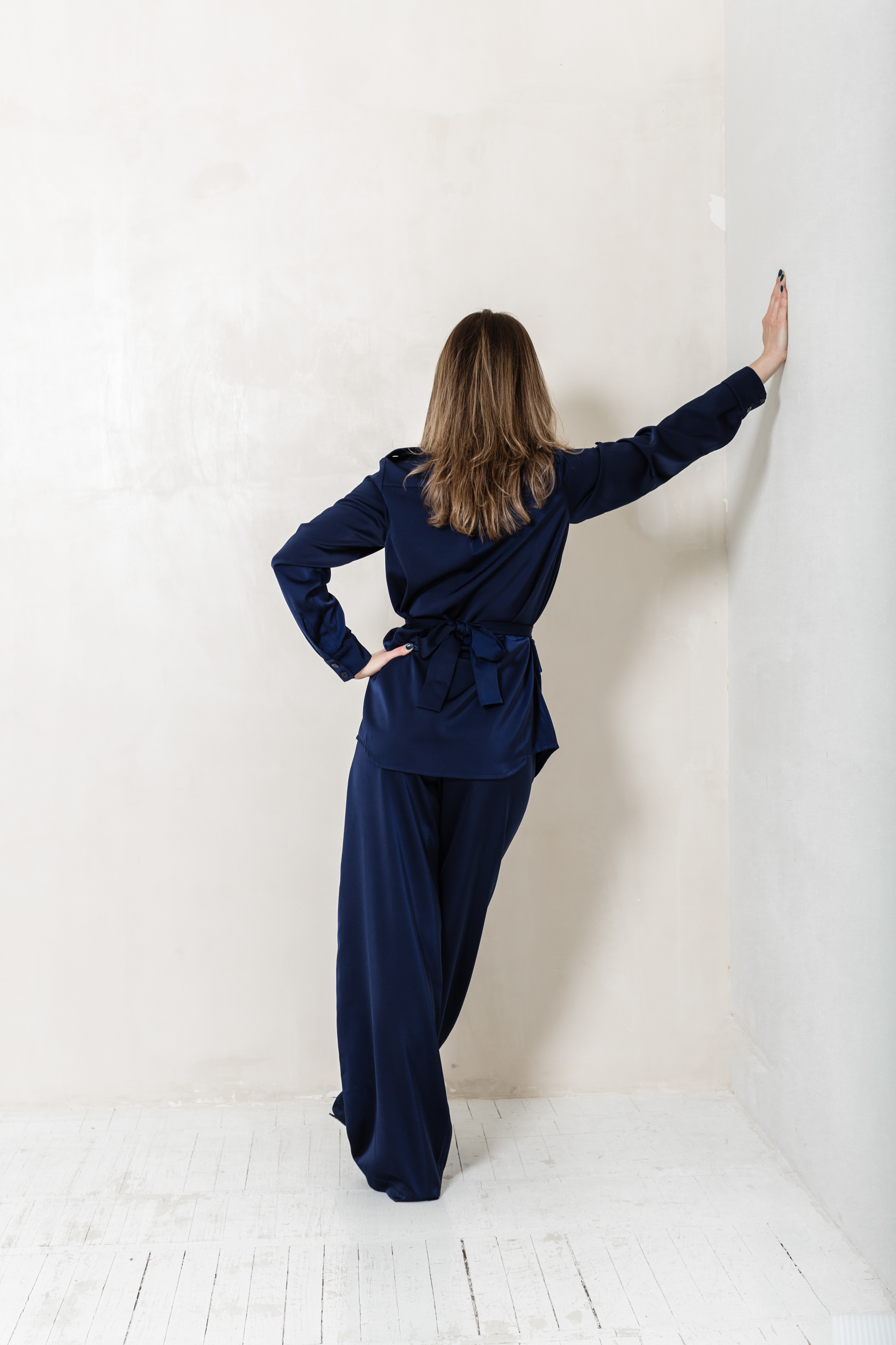 Блуза - рубашка выполнена в стиле сафари с накладными карманами с клапанами на груди и по бокам. Рукав длинный с манжетом и возможностью подворота. Имеет закругленный нижний край и съемный пояс.