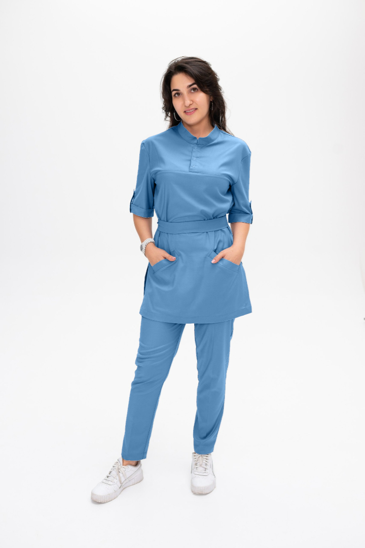 Брюки женские полуприлегающего силуэта. Материал: 53% cotton, 44% polyester, 3 % Lycra. Брюки-зауженные с длинной 7/8 с высокой посадкой подойдут для любого роста и фигуры. Пояс на мягкой резинке. Два боковых кармана. Внизу небольшой разрез.